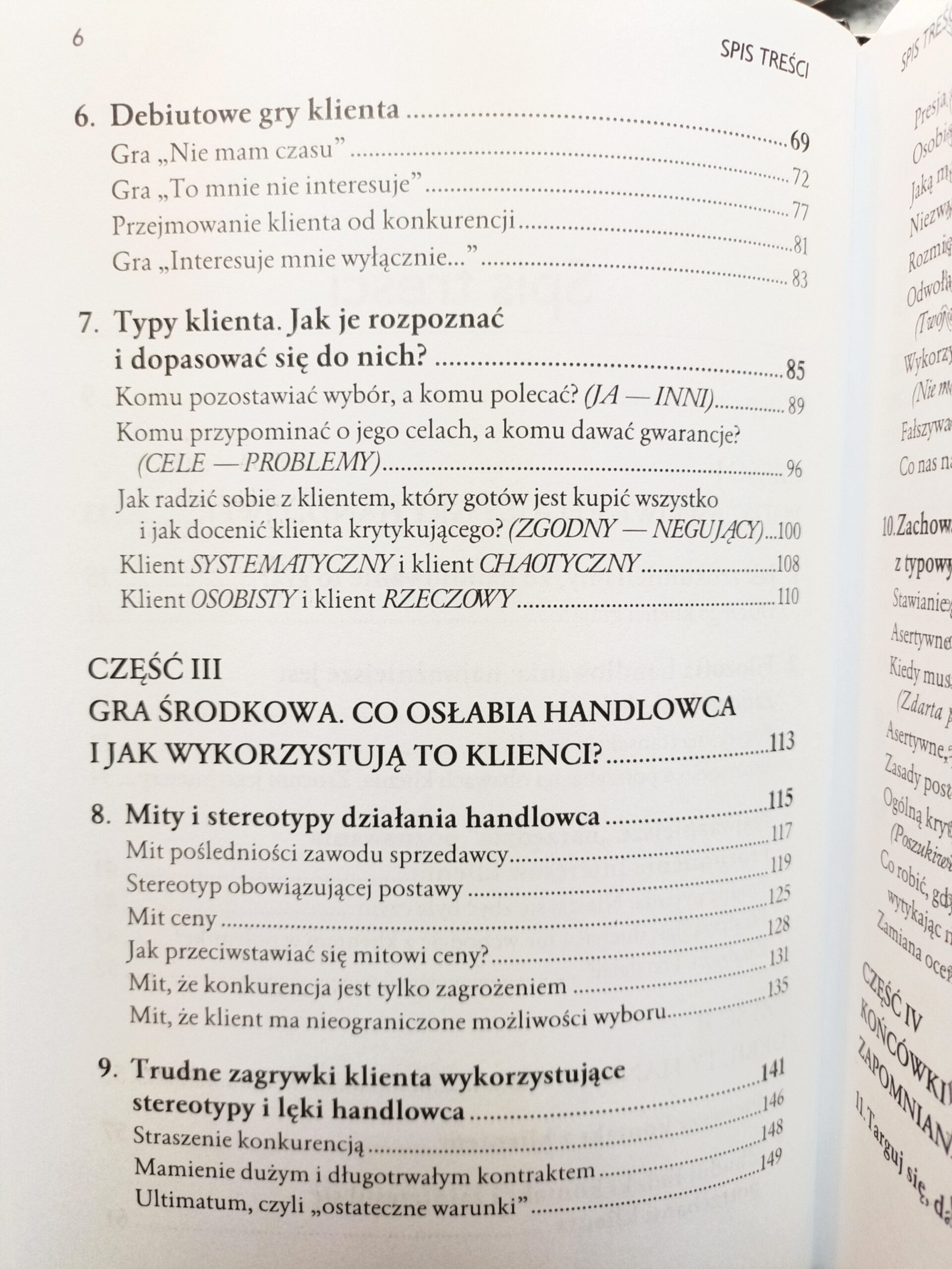 • W części drugiej książki autorzy skupiają się na zagadnieniach związanych z negocjacjami handlowymi. Omawiają między innymi przygotowanie do negocjacji, techniki negocjacji, radzenie sobie z trudnymi sytuacjami w negocjacjach.