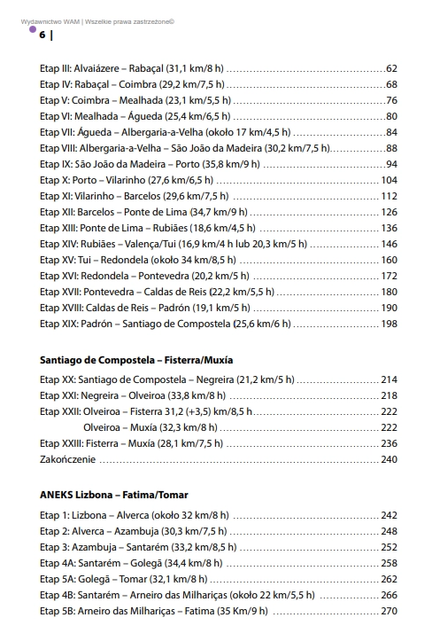 Szczegółowe opisy poszczególnych etapów wędrówki, z uwzględnieniem różnych wariantów trasy, w tym również wyjątkowej drogi z Fatimy do Tomaru – miejsca pełnego historycznych i duchowych znaczeń.
