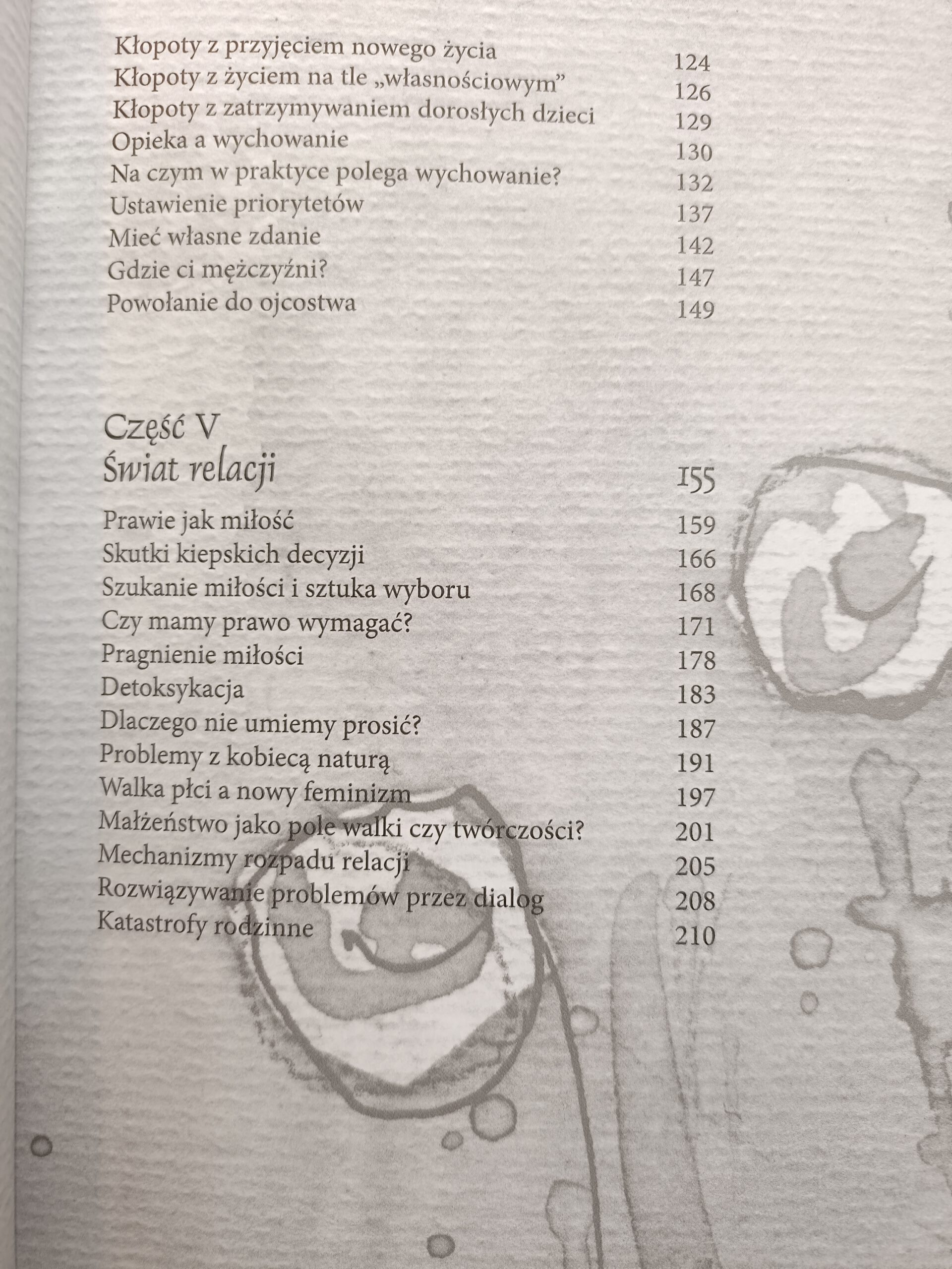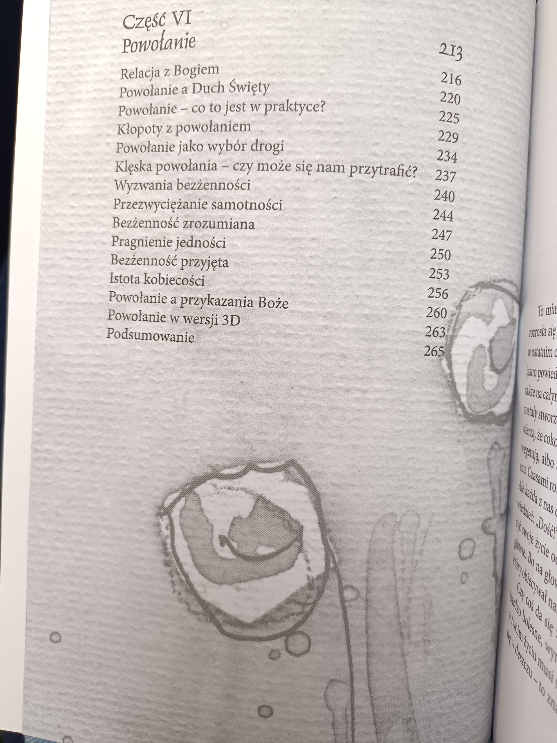 Książkę podzieliłam na zagadnienia, na przykład: piękno, prawda, powołanie. Każde z nich dzieli się na kolejne, bardziej szczegółowe. Jeśli jakiś temat jest dla ciebie oczywisty, nudzi cię albo nie dotyczy zostaw go i przerzuć kilka kartek. Ale nie decyduj o tym, widząc tytuły, tylko treść rozdziałów. Jeśli jakiś fragment wzburzył cię lub rozgniewał, albo przyprawił o łzy – to znaczy, że dotknął ważnych dla ciebie spraw.
