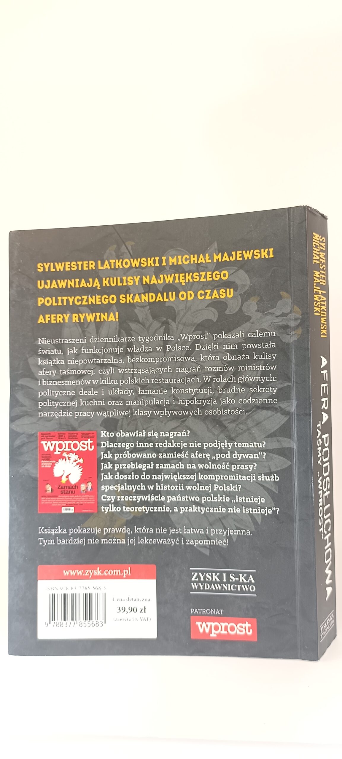 „Afera podsłuchowa. Taśmy „Wprost”” to reportaż autorstwa Sylwestra Latkowskiego i Michała Majewskiego, który odsłania kulisy jednego z największych politycznych skandali III RP – afery podsłuchowej z 2014 roku. Autorzy, jako nieustraszeni dziennikarze tygodnika „Wprost”, pokazują mechanizmy funkcjonowania władzy w Polsce, obnażając polityczne układy, manipulacje i hipokryzję elit. To bezkompromisowe i wstrząsające świadectwo o rozmowach ministrów i biznesmenów, które zostały nielegalnie nagrane w warszawskich restauracjach.