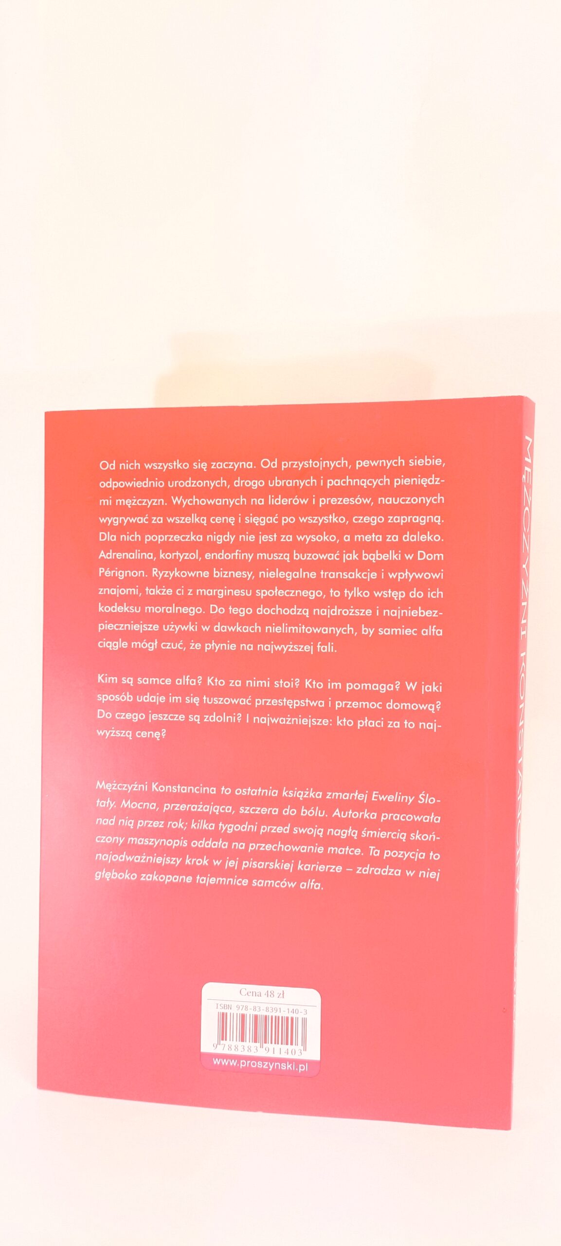 „Mężczyźni Konstancina” to książka, która wciąga od pierwszej strony, jednocześnie szokuje i zmusza do refleksji. To ostatnia, poruszająca powieść autorstwa Eweliny Ślotały – prawniczki, projektantki wnętrz i matki, która przez lata walczyła z cieniem przemocy domowej, osobiście dotykającym jej życie. Autorka odsłania świat elit Konstantyna – bogatych, bezwzględnych mężczyzn, których życie pełne jest ryzyka, przemocy, układów i bezkarności.