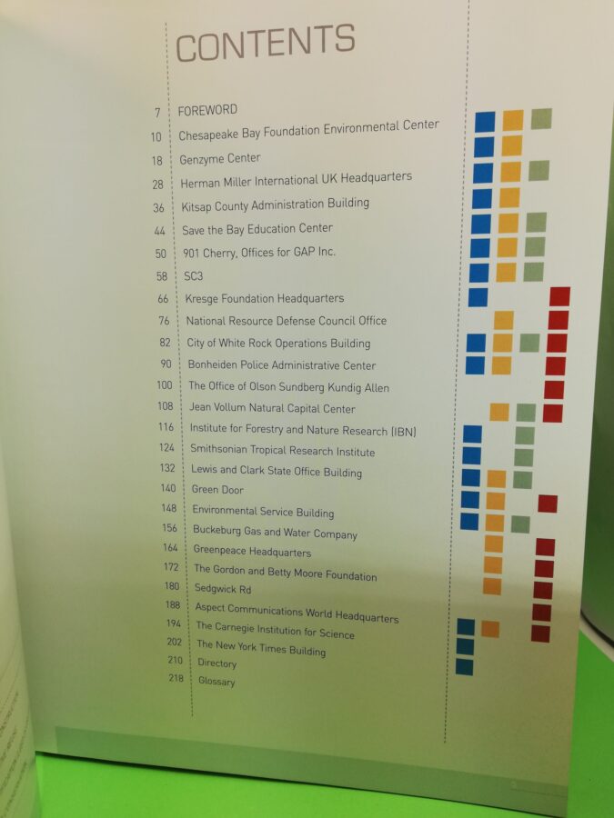 Album „The Good office” obejmuje 25 biur z siedmiu krajów i z dziewięciu stanów, które demonstrują innowacyjne sposoby włączania zasad zrównoważonego rozwoju do projektowania miejsca pracy.