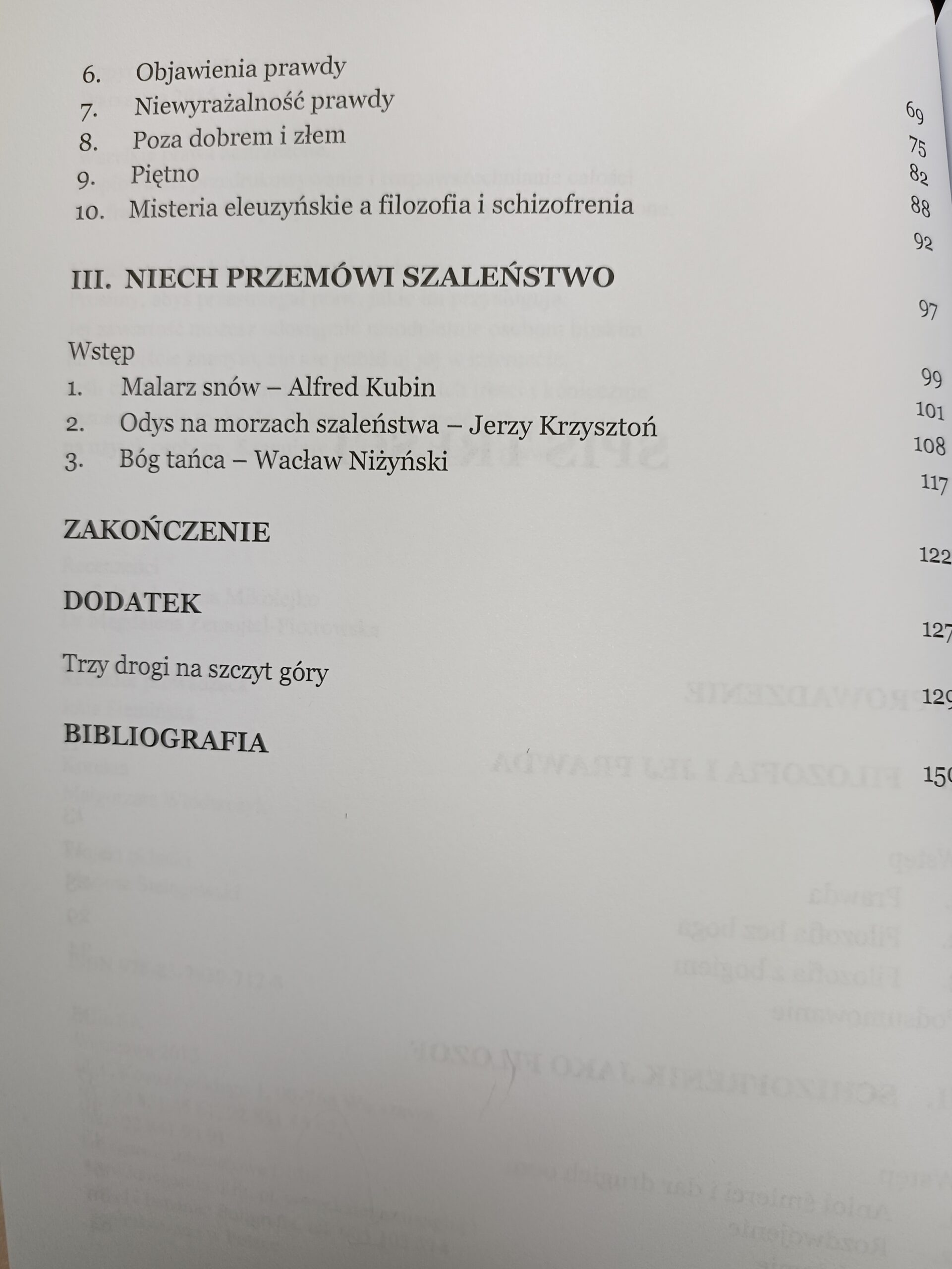 W książce przyjrzano się jego rozumieniu owej prawdziwej filozofii, gdyż na pierwszy rzut oka, wkraczał on jak szaleniec, popadając w psychozę, zstępując do podziemia swojej imaginacji, przekroczywszy granice tego, co wspólne, a więc racjonalne. Czy Szestow, uznałby schizofrenika za filozofa?
