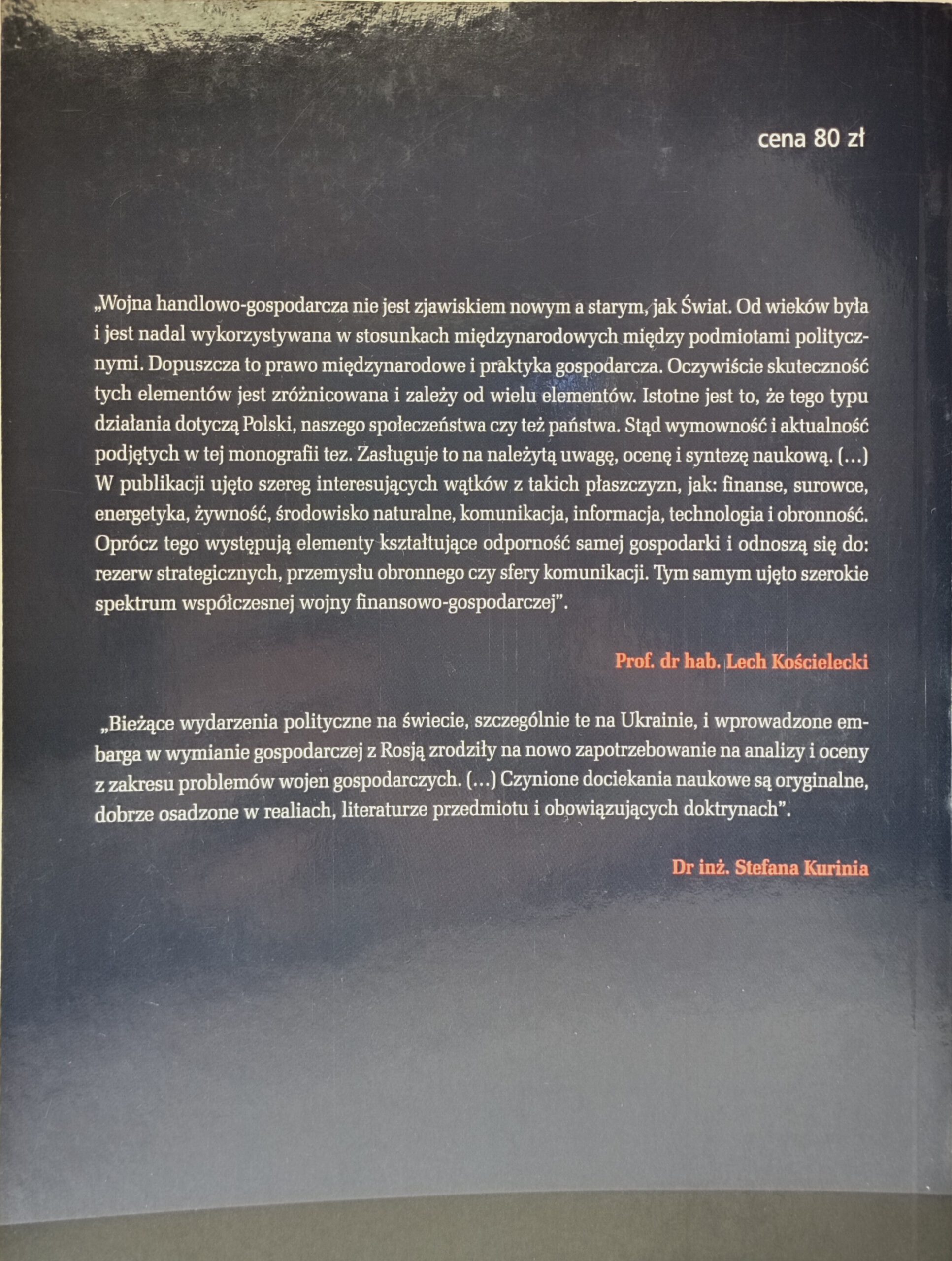 W polskiej literaturze przedmiotu w ostatnich latach pojawiły się nieliczne przy czynniki naukowe poświęcone tej tematyce, stąd przyczyna powstania książki pt. „Współczesna wojna handlowo- gospodarcza” , pod redakcją Janusza Płaczek.