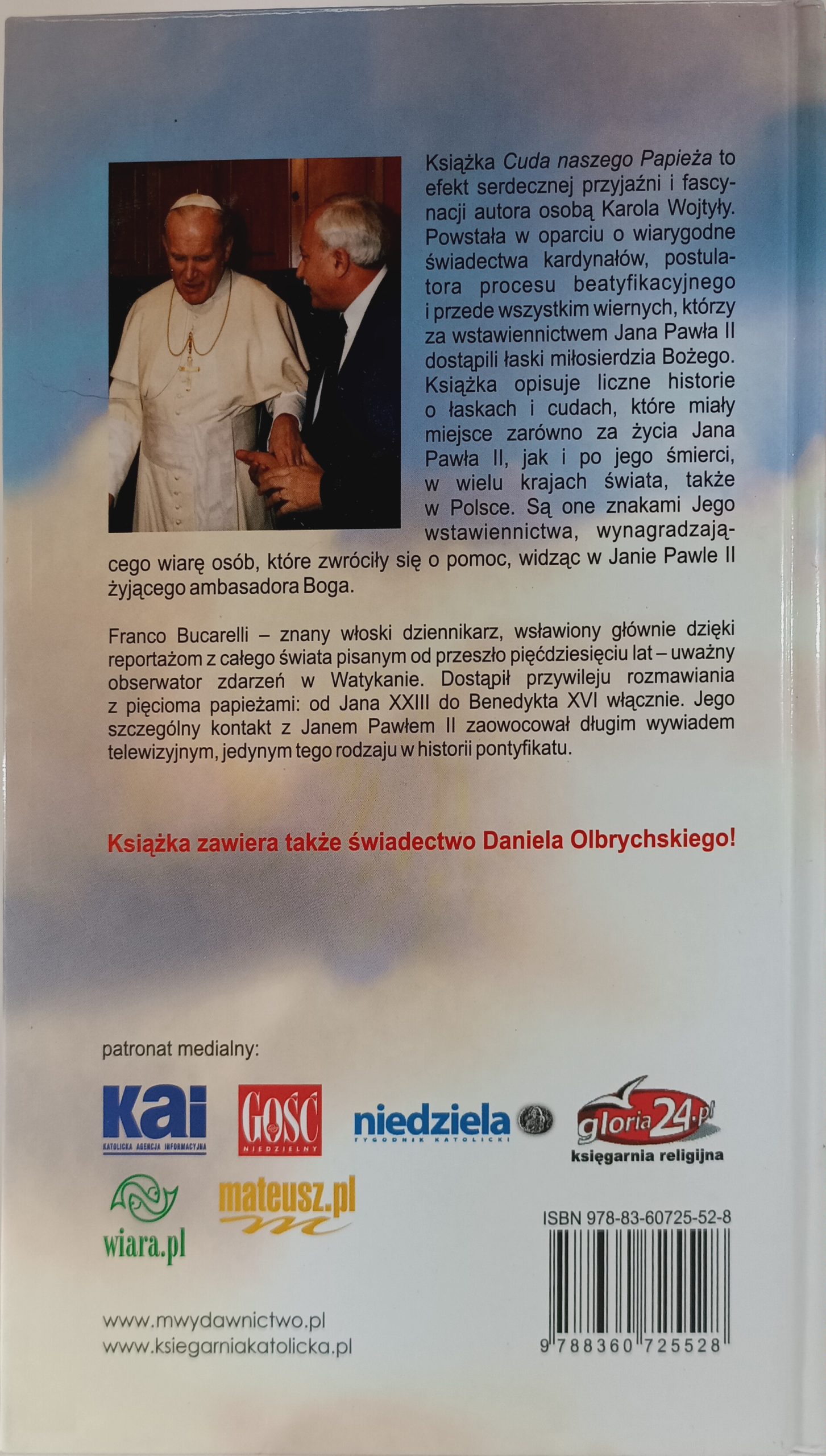 Książka nosi tytuł Cuda naszego Papieża, bo nie mogę się wyzbyć roszczeń do traktowania Go także jako mojego Papieża. Chociaż to wy Polacy, macie do tego prawo szczególne, ufam, że pozwolicie mi wraz z Wami mówić o Janie Pawle II nasz Papież.