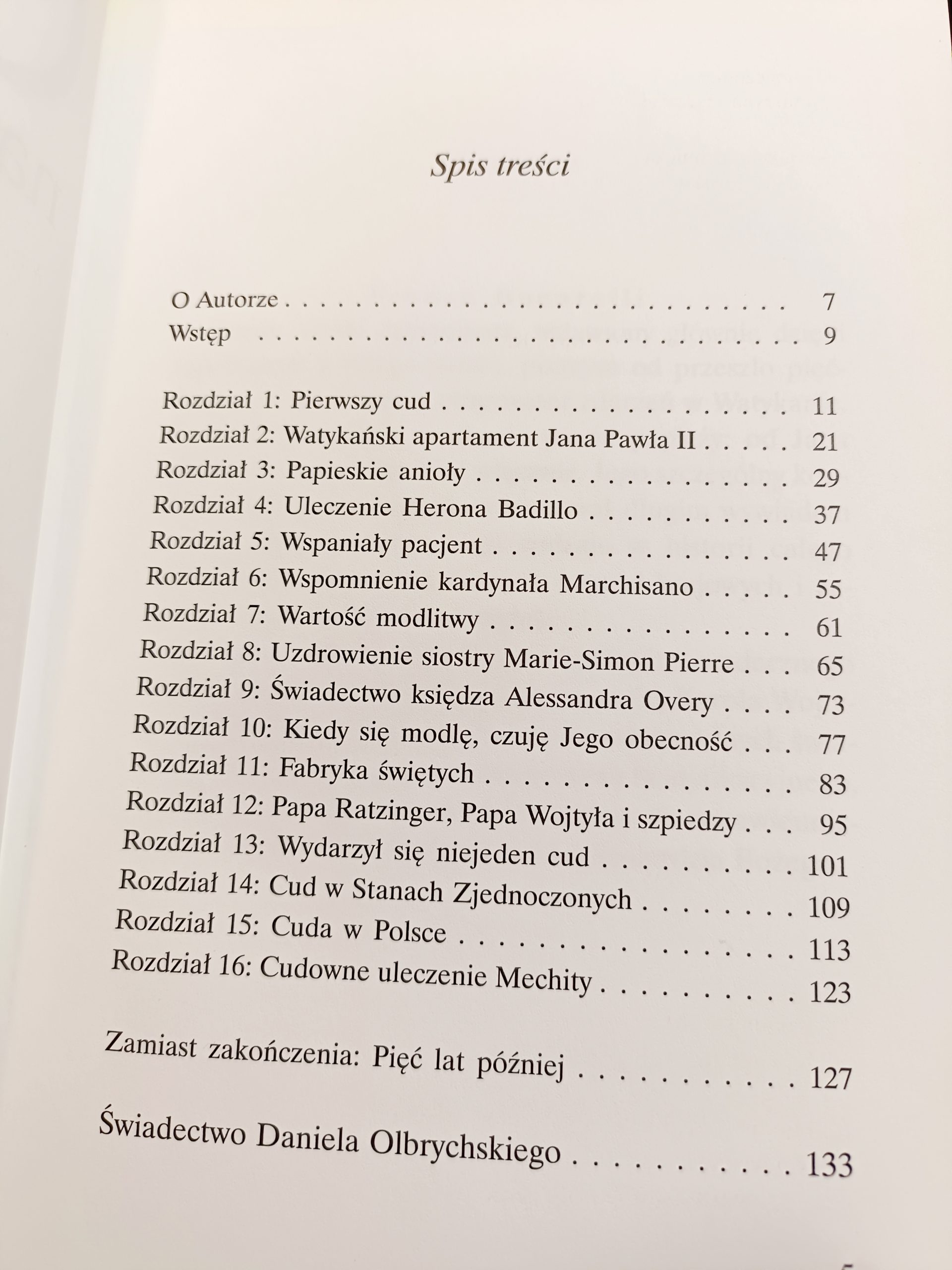Książka zawiera liczne historie opowiadające o łaskach i cudach, które nastąpiły zarówno za życia Jana Pawła II, jak i po Jego śmierci. Są one znakami Jego wstawiennictwa, wynagradzającego wiarę osób, które zwróciły się do Wywiad autora z Janem Pawłem II