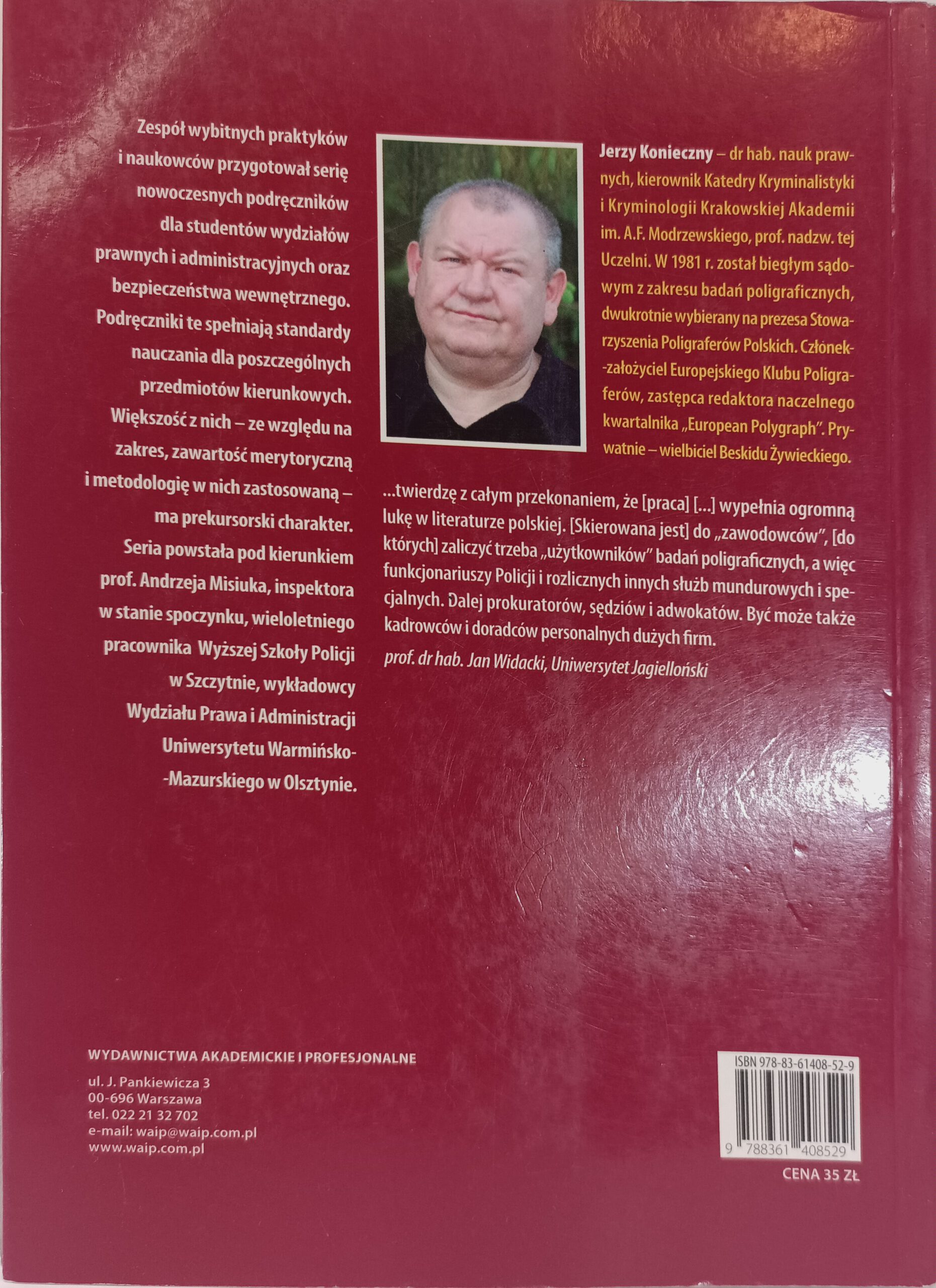 Mam więc nadzieję, że prezentowana praca jest nowoczesna, co najmniej w tym sensie, te odzwierciedla aktualną, dobrze ugruntowaną wiedzę na temat badań Świadomie jednak niemal autor pomija pewien bardzo ważny kontekst badań poligraficznych, mianowicie ich uwarunkowania prawne.