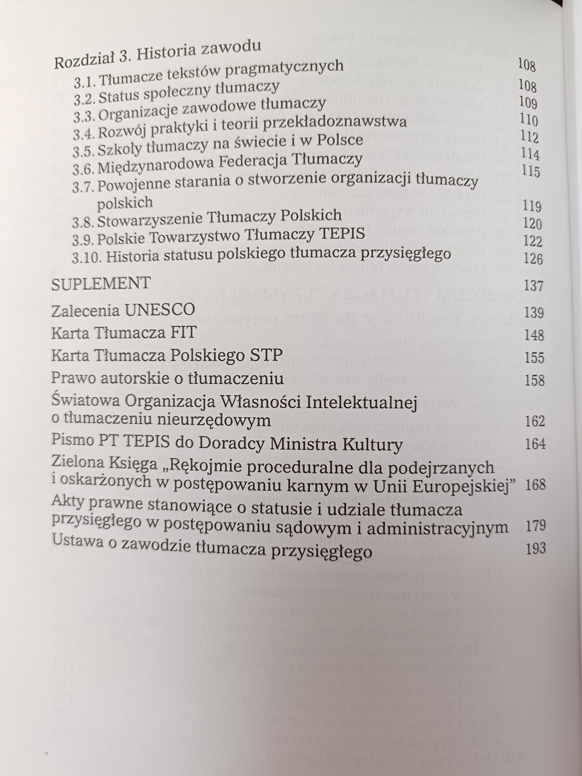 W rozdziale trzecim książki „Kodeks tłumacza przysięgłego z komentarzem „ umieszczona jest historia zawodu tłumaczy , ze szczególnym uwzględnieniem tłumaczy pragmatycznych- historię zawodowych organizacji tłumaczy przysięgłych w perspektywie ponad stu lat.